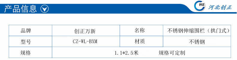產(chǎn)品名稱:不銹鋼拱門式伸縮圍欄
