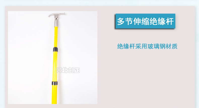 4、產(chǎn)品特點(diǎn):重量輕,易攜帶,使用方便,可根據(jù)使用空間伸縮定位長(zhǎng)度,克服了接扣式拉閘桿因長(zhǎng)度固定而使用不便的缺點(diǎn)。
