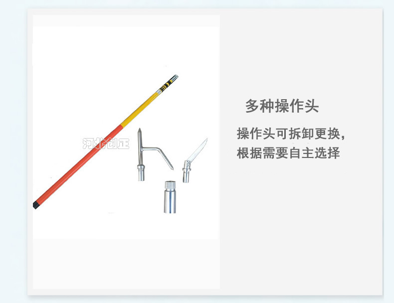 4、產(chǎn)品特點(diǎn):重量輕,易攜帶,使用方便,可根據(jù)使用空間伸縮定位長(zhǎng)度,克服了接扣式拉閘桿因長(zhǎng)度固定而使用不便的缺點(diǎn)。
