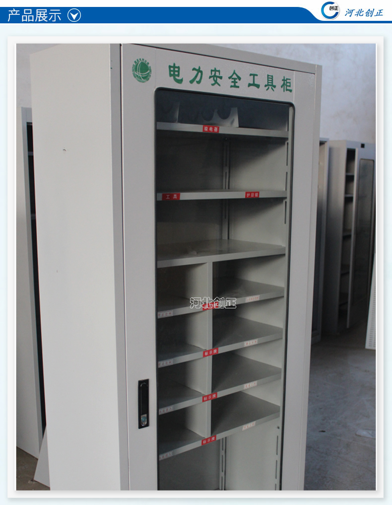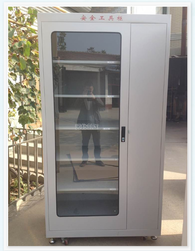 1、柜體是冷軋鋼板卷壓成型,厚度有1.0mm,1.2mm,1.5mm供選擇。柜體表面采用靜電防腐噴塑工藝,顏色為駝灰色,柜門(mén)裝有通體透明鋼化玻璃,透過(guò)玻璃可以看到分類(lèi)有序的工器具。